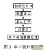 地面测试设备通过RS-422串行总线与惯组通讯,主要完成惯组数据接收和惯组误差补偿参数写入,其波特率为921.6 Kb/s。而数据包括帧计数、3路陀螺数据及温度3路加表数据及温度,以及温度控制板温度。惯组的数据每隔10 ms发送一组数据。利用API函数实现对RS一422串口通信的访问,在实现控制通信中,主要调用3个函数实现串口控制:首先配置串口,串口打开,然后通过对串口操作,接收数据后,关闭串口。程序设计流程如图3所示。设计时,串口设计是针对CP-132UL V2采集板,由于采集板内部可自动分配地址,所以不需要对硬件做任何操作,只需在软件上编写串口功能即可实现串口通讯。