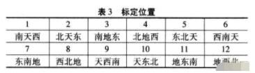 加速度计误差参数的标定采用在重力场静态条件下多位置标定方法。惯组加温稳定以后,按照表3所示的12个位置顺序进行标定。