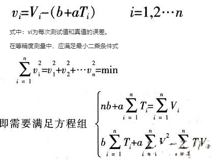 利用标准温度值T1,T2…Tn带入方程组中可以解得a和b的值,这样,就完成了利用最小二乘法对载重和电压进行线性标定的过程。