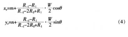 对于灰度图像中任意点的梯度幅值用R表示,设R0为边缘点P0(m,n)的灰度梯度方向的模,R-1,R1分别是在梯度方向上与P0相邻的两像素点P-1,P1的梯度幅值,经推导可得亚像素点的坐标(xe,ye)为: