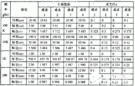 测试部分包括波形和功能测试。部分实测数据如表1(幅值误差为满量程误差)所示。