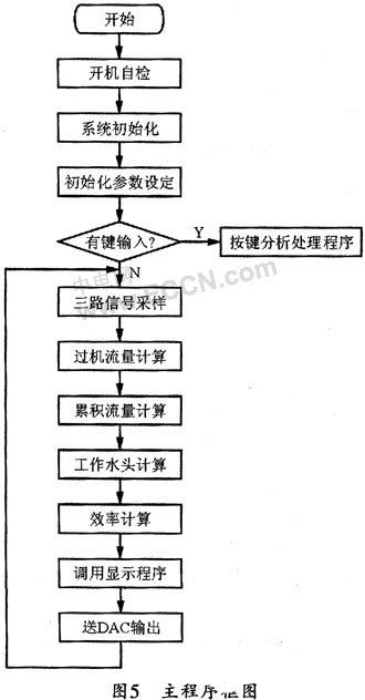 本测试系统软件可用C语言编写而成,整套程序可由主程序、键盘显示处理程序、中断处理程序、数据分析处理程序及AD、DA等子程序构成。图5所示是其主程序框图。