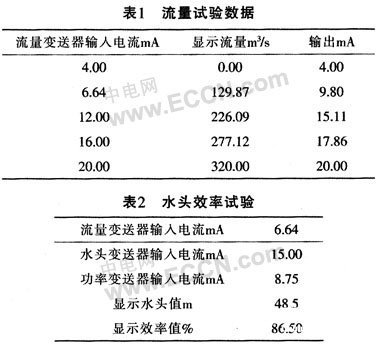 水电机组重要的水力参数主要是水轮机的过机流量、累积流量、工作水头和机组效率。水轮机过机流量可采用蜗壳差压法来进行测量,即用压差变送器测出蜗壳测流断面内外的压差△P,并根据压差△P与流量Q的关系式