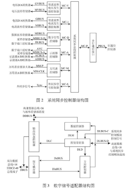 数字信号适配器、高速采样存储器和系统同步控制模块内的控制电路构成了一个18通道的逻辑分析仪,该逻辑分析仪具有200 MS/s的采样速率和1兆点的存储深度,具有丰富的信号触发能力和同步工作能力,其信号测量带宽为80 MHz。数字信号适配器具有双向信号处理能力,它既能够将被测系统的数字信号送往系统同步控制模块内的逻辑分析仪进行测量,又能够将数据模型发生器输出信号送往被测系统,驱动被测系统的信号节点。