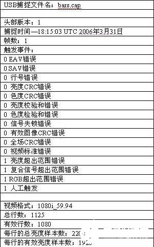 表头提供的信息包括被捕获数据出现的时间、捕获数据中存在的触发错误类型以及视频信号格式。在表2所示的例子中,信号是一个包含1920x1080有效图像面积的1080i59.94信号。