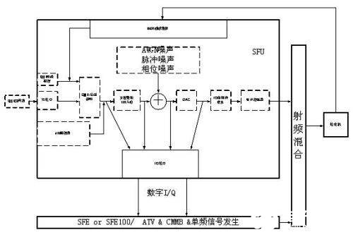 R&S公司的广播电视测试系统SFU功能强大,可以输出不同位置的I/Q数据,也可以加入多种信道模拟。图3说明了SFU/SFE100构成的系统所能完成的测试任务。