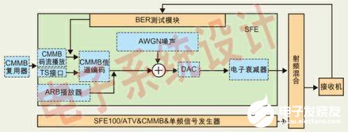 与CMMB高级测试系统相比,该系统最大的不同在于将广播电视测试系统SFU改换为广播电视测试仪SFE,利用SFE100实现同邻频干扰和单频干扰测试。