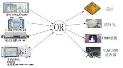 无论是广播电视测试系统SFU、广播电视测试仪SFE、测试发射机SFE100,还是手机综测仪CMW500和通用信号源SMU/SMJ系列,它们都可以产生CMMB信号,可以测试CMMB芯片、高频头、整机以及电脑用接收器等CMMB产品。