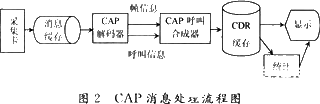系统分析在用户需求的基础上,采用面向对象的思想对CAP模块具体分析,划分系统的各个部分,明确他们之间的层次关系,然后将各个部分作为一个对象进行功能分析,对每一层次的数据进行加工处理,并向上一层提供必要的支持。根据软件总体架构方案协议消息处理流程如图2所示。