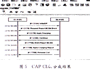 在模块的整个开发流程中,每一步都要进行软件的测试工作,以保证整个模块开发工作的正确性。下面是软件实测后进行CDR合成的结果,可以从图5中看到,软件实现了CAP的CDR功能,点击单条消息名称可以看到消息的关键数据,在此不再进行演示。