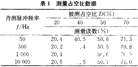 测量数据表明测量电路基本能够得到待测信号正确的占空比值,占空比误差一般不超过2%。当被测频率较高,占空比较小时,误差要较大一点。通过对电路和测量数据进行分析,可以得到测试误差主要来源于以下几个方面: