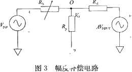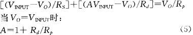 下面介绍一种比较经典的幅度补偿方法,如图3所示。这种方法在许多测量仪器的滤波器电路中都有应用,这种方法的核心思想是通过加补偿电阻Rd将一个合适大小的电压补偿到输出节点O处,从而抵消由于串联Rs而导致的电压变化。其中,系数A是一个关键量,为了保持O点处的电压VO总等于VINPUT,通过基尔霍夫电流定理由式(5)得到A: