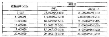 由于频率合成器输出的频率信号最小只能调到10Hz,把XDU-17的测量值作为标准,可以计算出样机测频的精度。
