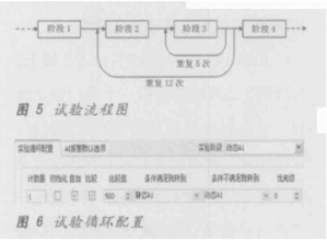 阶段配置如图5所示,这是一个普通的试验流程,共有4个阶段,如果不加上试验循环的话,按照上述的配置方法就可以实现了。但是为了模拟出一个产品实际使用的环境,加入了试验循环的概念。针对本系统来说,是通过软件计数器的方式来实现的。对于简单的单个循环,可以在需要循环的阶段开始时对计数器进行初始化,并在该阶段结束时将计数值自加后的当前值同目标值进行比较,并根据比较结果来决定试验流程的走向(满足目标值时,执行下一个阶段的第一个步续,不满足时,重复循环当前阶段,如图6所示。