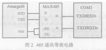 本测试系统要与测试对象进行通信,为保证数据传输的可靠性,我们采用RS-485通信。系统在设计中采用两个串口COM1、COM2,其中COM2可通过跳线设置为RS485方式[3],其应用电路如图2所示。