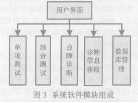 系统测控软件是在Windows98环境下运行由Borland C++ Builder6.0语言编写,测控软件由主菜单程序、自检程序和测试应用程序组成。该软件采用模块化结构,各程序块之间相互独立、自成系统。其软件模块组成如图2所示。