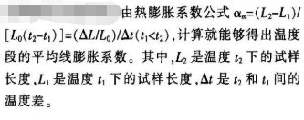 测试系统通过将被测材料放在加热炉体内,随着温度升高,材料受热膨胀后膨胀量通过顶杆将膨胀量传递到位移传感器上,位移传感器器所测得的位移量就是材料热膨胀变化的位移量。随着炉体温度的升高,系统将温度信号和变化的位移信号通过数据采集和处理分别实时地传到PC机中,通过热膨胀公式计算获得材料的热膨胀系数,这就是测量热膨胀的基本原理。