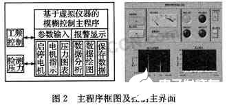 使用Labview编程语言开发控制系统过程可分成两步:(1)开发仪器面板、数据报表、板卡驱动程序、数据分析程序等;(2)根据用户需求生成具有仪器面板,相应的数据分析管理功能的虚拟仪器。基于虚拟仪器的模糊控制系统,如图2所示。