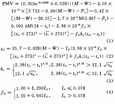 通过反应人体对热平衡的偏离程度的人体热负荷得出PMV指标,计算公式如下: