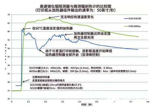 组件在转动的第一周时,由于与纸张接触,温度会有所降低。双滞环控制器感应到降温后,会全幅开启加热器控制器。最后,当显影辊加热至预设温度后,控制器会关闭加热过程,然后再重复这一过程。这张图形足以帮助研发工程师确认两件事:检测产品需要一台光子计数热像仪;如需获得理想的设计目标,需要在加热的显影辊上加装PID控制系统。