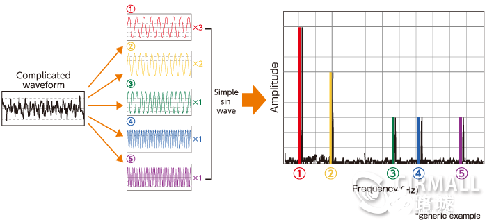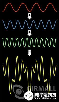 通过上面的例子,可能有人会有疑问,虽然上面看到复杂的波形其实是由三个标准的正弦波叠加起来产生的,这是不是故意找的特例?现实中的波形大部分不是这样由三个标准正弦波叠加出来的怎么办呢?