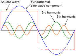 可以看出方波信号可以拆解成一系列正弦波的叠加,这些正弦波就是频谱波形上的那些小竖线。频率与方波频率相同的正弦波分量我们一般称为基波,频率为3倍的正弦波分量称为3次谐波,然后5次,7次谐波等等一直到无限。