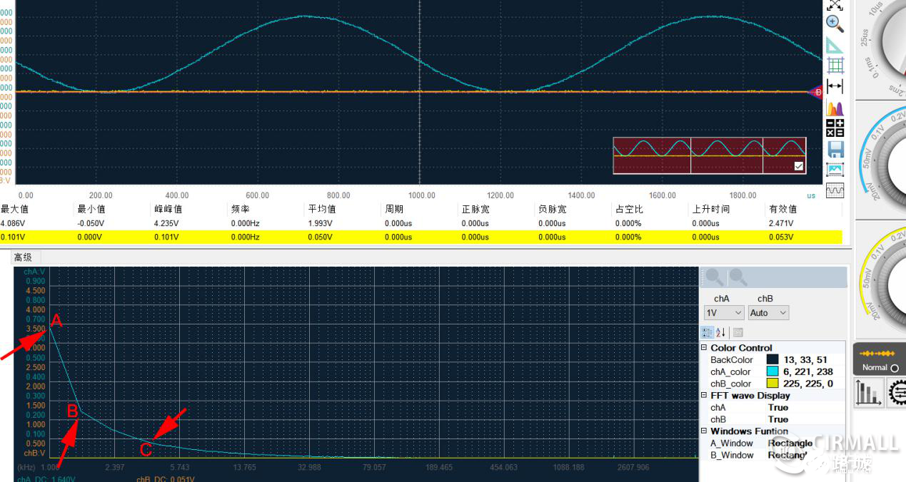 问题1:我们可以用示波器看到某个信号的时域波形,为什么还要用FFT看这个信号的频域波形?