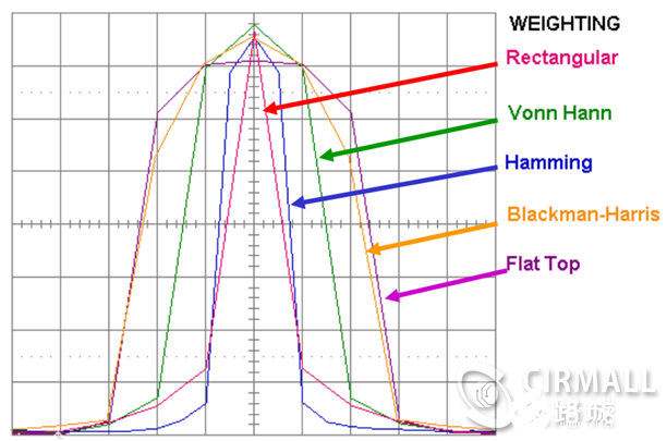 我们一般默认用的是矩形窗,不同的窗函数能不同程度的改善谱线的圆润程度。以上面的频谱泄漏图为例,由于突然截断造成周期延拓时两个周期相邻处出现了信号突变,这种突变,代表的是信号包含了高次谐波。加上合适的窗函数,可以把这个突变变得圆滑一些,从而抑制高次谐波。