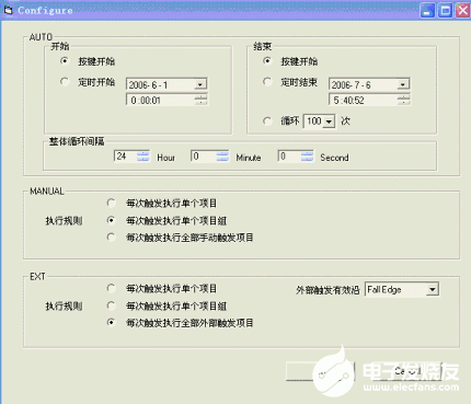 如下图,其中Auto框对应的自动触发方式巡检的执行规则,按键开始和按键停止,每次大的循环时间间隔为24小时。