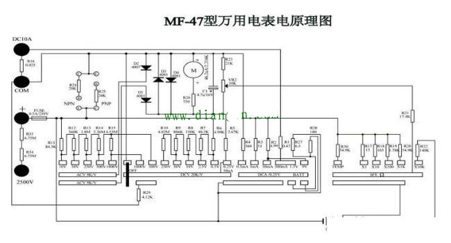指针式机械万用表,从它的结构上讲表头都是一块高灵敏度的磁电式微安级直流电流表头。常用的磁电式微安表头是根据磁场对通电导线的作用原理制成的,其结构如下图所示。