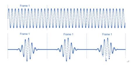 图5. 正弦信号采集样点(上)和Frame 1周期扩展波形(下)