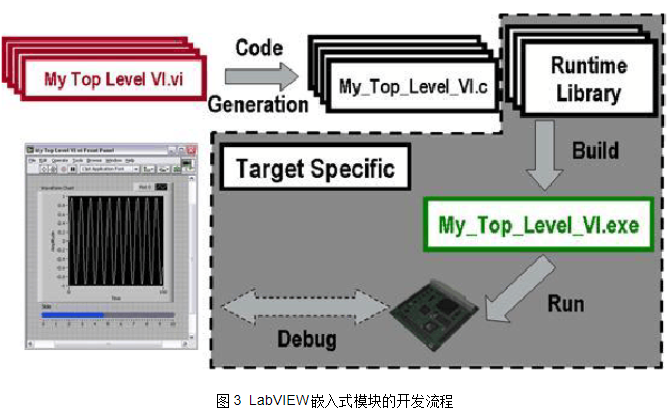 LabVIEW包括一个广泛的工具集,该工具集构成了一个用于设计、控制和测试的图形化开发平台。新的NILabVIEW嵌入式开发模块是LabVIEW图形化编程环境的一款全新附加模块,是一个开放的框架,它可以集成任意的第三方工具链,将生成的C代码与LabVIEW运行库函数和板卡支持程序包,编译成为针对某一目标并能在之上运行的二进制代码。通过LabVIEW嵌入式开发模块和工具链,可以发布到运行任何操作系统的任何的32位处理器。该模块包含了近千个内建的库函数,涵盖了高等算法、文件I/O、逻辑和信号处理各个方面。原先无法利用到嵌入式编程的工程师们都可以进入32位微处理器的领域之中,通过LabVIEW中附加的状态图、控制图表、信号处理库函数等这一完整的工具来设计他们的应用,解决各种问题。此外,通过LabVIEW嵌入式方式,工程师和科学家可以使用一种叫做内联C节点(InlineCNode)的新特性,整合现有的嵌入式代码,来保持LabVIEW的开放架构。另外,在LabVIEW嵌入式项目环境中,还可以直接添加用C或者汇编开发的源代码,或者库文件,帮助开发人员充分利用以前的工作成果。