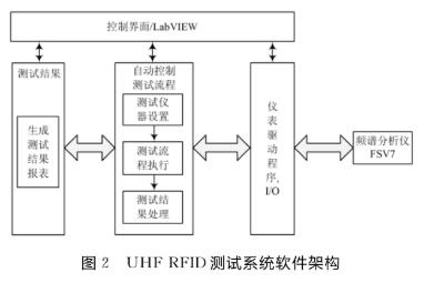 超高频RFID读写器射频的测试项目有载波频率容限、占用带宽、发射功率、邻道功率泄露比和杂散发射等。在通常的手工测试中,每一项测试都要对仪器进行重新配置、重复的手工测试和记录大量的数据,不仅浪费时间而且还容易出错。RFID测试软件通过通用总线接口GPIB接口把计算机和仪器有机地融合为一体组成一个测试系统,从而把计算机的数据处理能力和仪器的测量、控制能力结合在一起,以使测试流程集成化简单化,最大程度地降低测试人员的工作量与操作复杂程度。该测试系统具有自动控制、数据采集和报告自动生成功能,软件提供仪器配置、仪器设置、仪器校准等信息,并提供实时操作提示、仪表的工作状态和当前测试状态等信息。