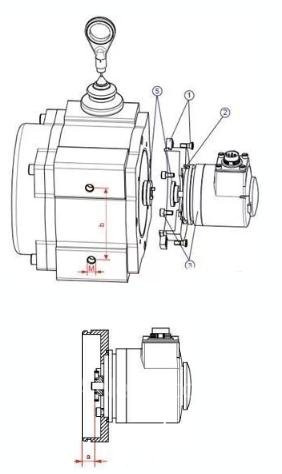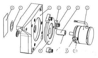 1) 先通过螺栓将编码器和法兰固定(图中3),再连接联轴器(图中5),注意联轴器与法兰端面的距离(图中a),再通过螺栓将编码器和法兰一起固定在拉线机构端面上。