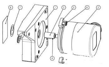 2) 如果是外径为36的编码器则需要通过转换法兰(图中9)来安装在拉线机构上,仍然需要特殊的轴套(图中3)来套在编码器(图中2)的轴上,再通过螺栓将编码器固定在拉线机构上(图中1)。