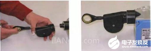 3) 拉线编码器的拉绳拉出拉线机构后,不要突然松脱拉绳,让其在自身回复力的作用下容易损坏拉线机构,因为拉绳在没有外力的作用下,不能保持直线运动而容易弯折,在收缩回拉线机构时会阻塞在机构内部。