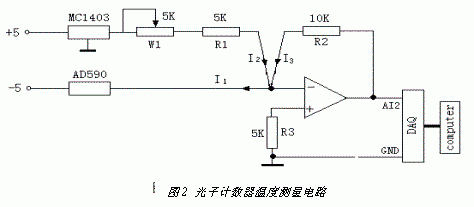 光子计数器PMT在半导体制冷片的作用下,温度大约是5OC 。其温度测量电路如图2所示
