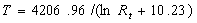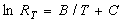 上式中B、C为常数。实验测得不同温度下热敏电阻阻值,把lnRT和绝对温度T进行线性拟合,得B=4206.96 C=-10.23 。由式(8)得绝对温度与热敏电阻阻值的关系为: