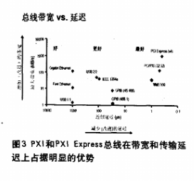 谈到总线平台,往往会让人联想到GPIB、USB、LAN/LXI、PXI和PXI Express等仪器总线。每一种仪器总线都有其适合的测试应用,例如,GPIB总线目前还是最常见的台式仪器控制总线;USB总线源于其即插即用性和较高的吞吐量,目前得到了广泛的应用;LAN/LXI总线特别适合于分布式的系统;PXI和PXI Express在带宽和传输延迟方面均提供了最高的性能指标(见图3)。可见,为了发挥不同总线的优势,达到系统性能的最优化,未来的测试系统会是一个混合总线的测试系统。