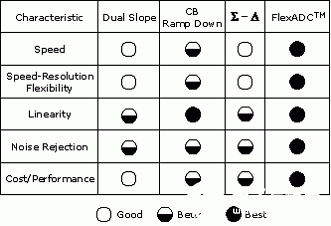 表2比较了四种ADC的体系结构: