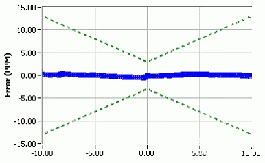 线性性作为数字万用表传递函数“质量”的度量,在转换组件特征应用中十分重要,能够提供相比商用ADC更好的DNL与INL(基本非线性性)性能。FlexADC是为保持DNL和INL的良好线性性而设计的。由于线性性决定了自我标定功能的可重复性,因此十分重要。图7曲线展示了在10 V范围内,从-10 V到+10 V测量得到的典型FlexDMM线性性曲线。