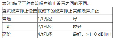 表5:直流噪声抑止设置