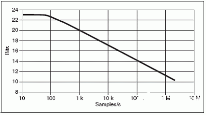 尽管通常是线性、低噪声的,制造商规格会将精度限制为五位半(19比特)