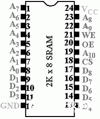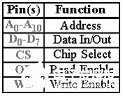 在WE(写启用)置为高电平时,IC芯片从数字测试仪等外置设备接收数据,并将数据写回由地址线指定的位置中。如果OE(读启用)置为高电平,集成电路从地址线所指定的位置接收数据,并将数据驱动至数据线上。验证这种存储器设备的最后一个步骤是通过比较预期响应分析输出。