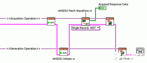如图10所示,采集操作必须在发生操作之前开始,以便确保采集操作在发生操作开始之前,做好接收开始触发的准备。最后可选的步骤是分析采集到的数据,您可以用来得到一个是否通过的简单结果。无需将采集的响应数据进行详细软件分析,下面的小节会讨论如何使用实时硬件比较特性,实现比软件更高效地完成分析。