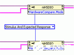 1、在发生环节和采集环节的配置阶段中,使用niHSDIO属性节点,启用NI 655x的硬件比较部分,如图11所示。
