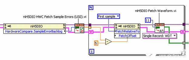 利用板载FPGA完成采集响应数据与预期数据的比较,能够大大提高速度和激励响应程序的可靠性。要开发使用硬件进行响应数据比较的程序,只需要对之前描述的LabVIEW软件比较程序进行少量的改动。