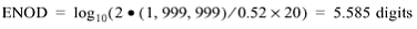 例如,一个6½位DMM能够表示一个给定范围,如1,999,999个计数或单元。但如果仪器的噪声的峰峰值为20个计数,那么可分辨的最小变化必须至少为0.52 x 20个计数,因为分辨率——仪器可以可靠检测的输入信号的最小变化——等于高斯噪声的电位或计数乘以0.52。因而,该6½位DMM的有效位数(ENOD)为: