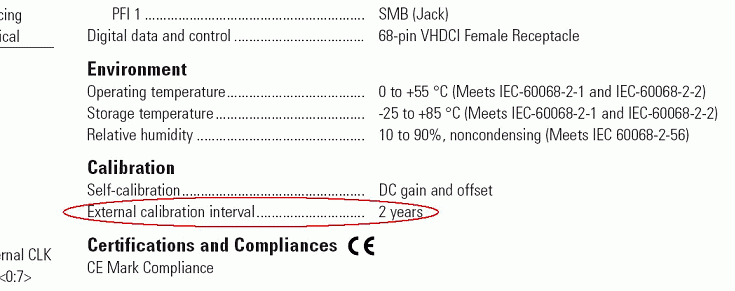 Figure 2. Not all instruments of the same type have equivalent external calibration intervals. When selecting instruments, consider the external calibration intervals.