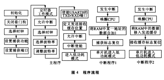 MSP430的开发软件较多,这里使用的是IAR公司的集成开发环境:IAR Embedded workbench嵌入式工作台以及调试器C-SPY。利用MSP430单片机的捕获功能,测试单片机能否准确捕获到来自传感器的信号。程序流程如图4所示。